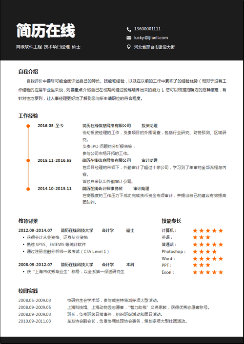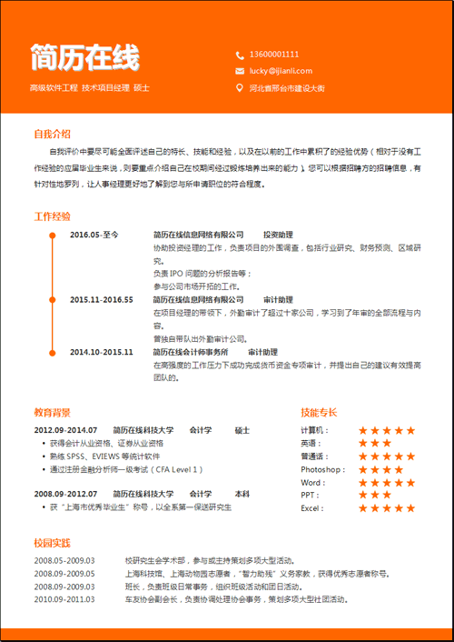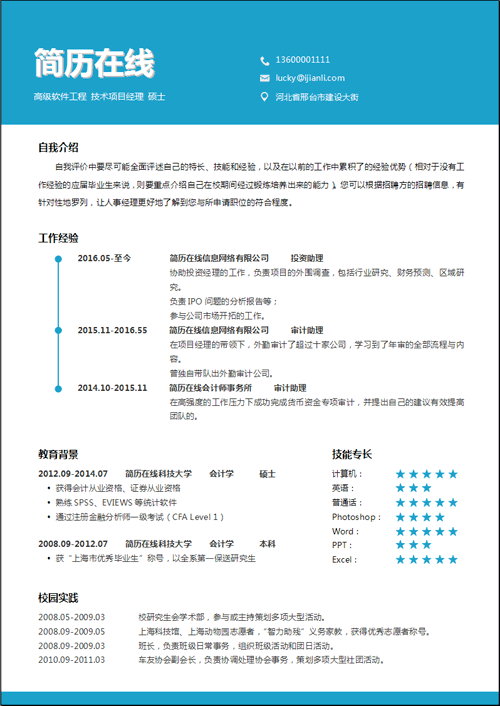 所下载的简历模板均可以全元素修改,编辑。全元素是指模板的所有内容,如文字、标题、图标、背景色、照片等等,这些均可以做添加、删除、复制、修改、替换等动作。