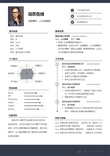 适合技术类商务类求职者的求职简历模板,突出求职者的工作能力。