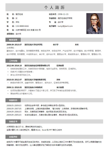 当前位置:首页 > 简历模板