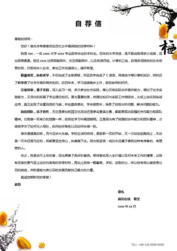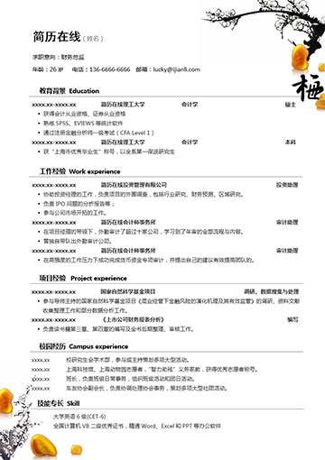 以梅花为主题的套装简历模板,包含简历封面,简历内容和自荐信。很中国风格。