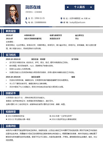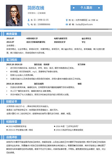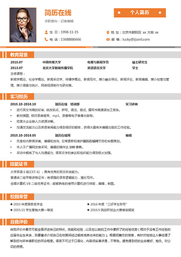 新闻编辑个人简历模板(JD10106)