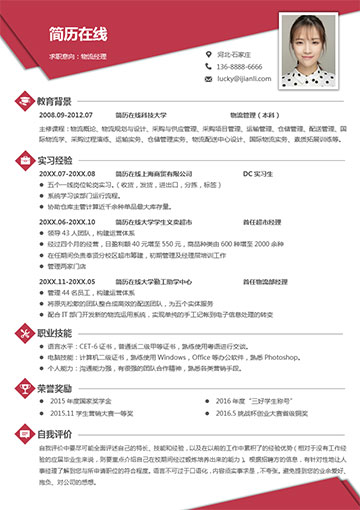 物流管理应届生个人简历模板(JD10124)