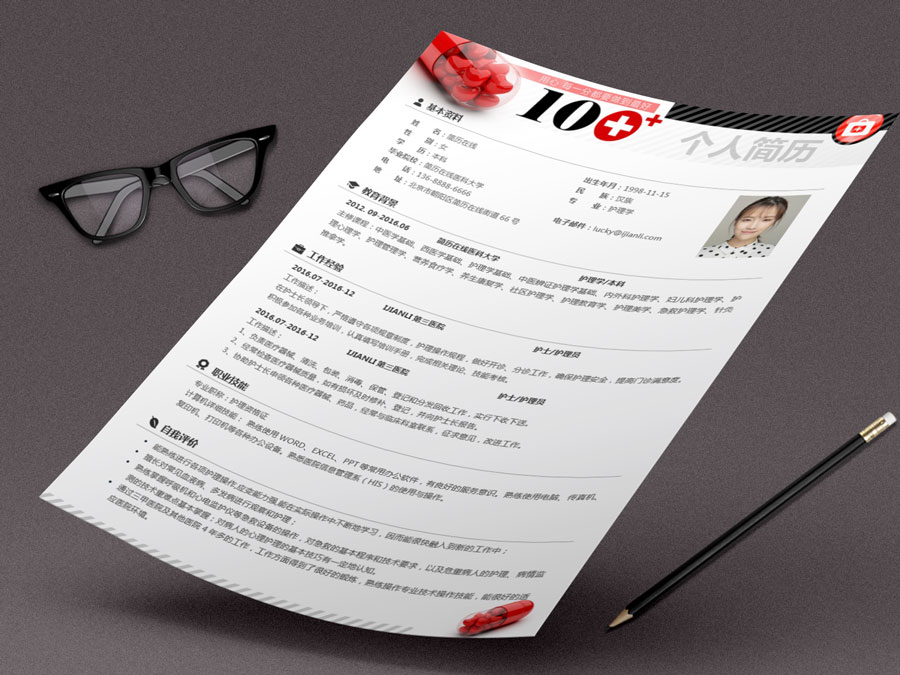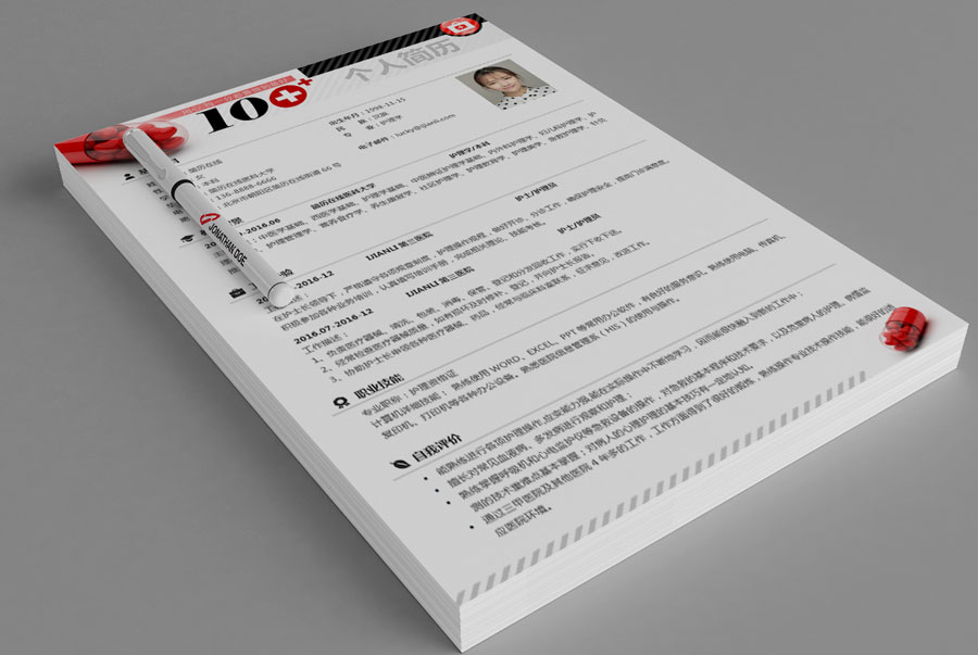 非常适合医学院毕业生、护士、护理人员、医生、医药行业的求职人士使用的创意性个人简历模板。