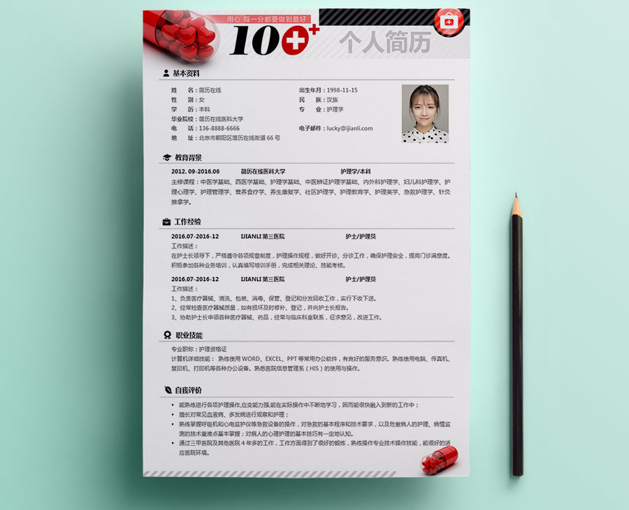 护士/医药类创意个人简历模板(CY10133)