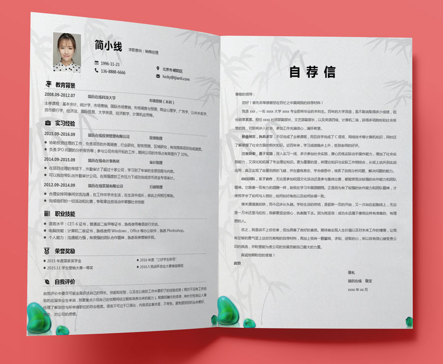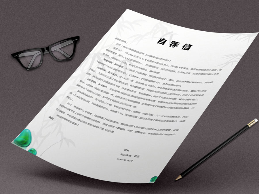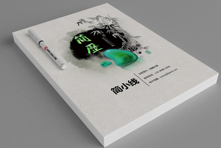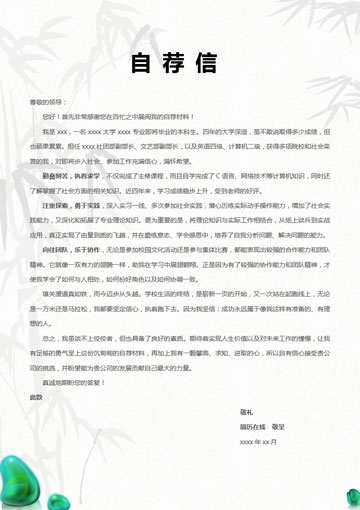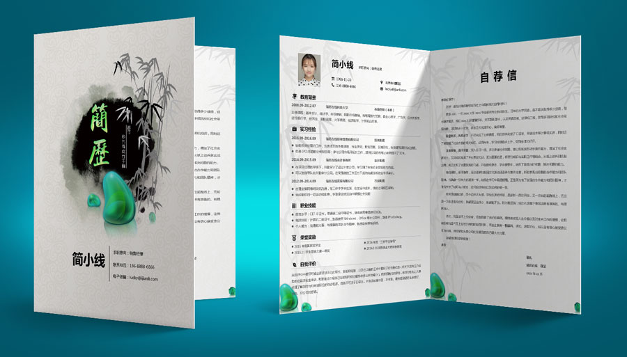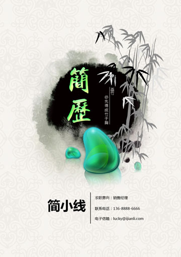 水墨竹创意套装简历模板(简历封面+内容+自荐信)(TZ10156)