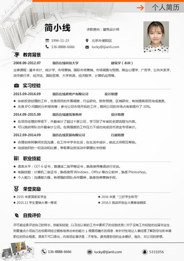 非常适合建筑,设计规划,房地产类求职者使用的简历模板。