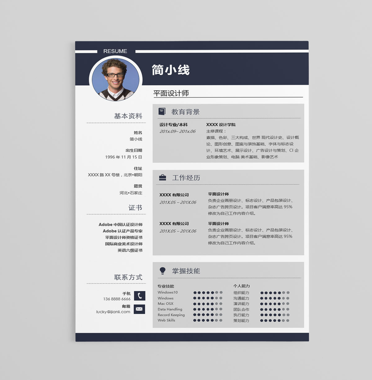 设计类个人简历模板(JD10185)