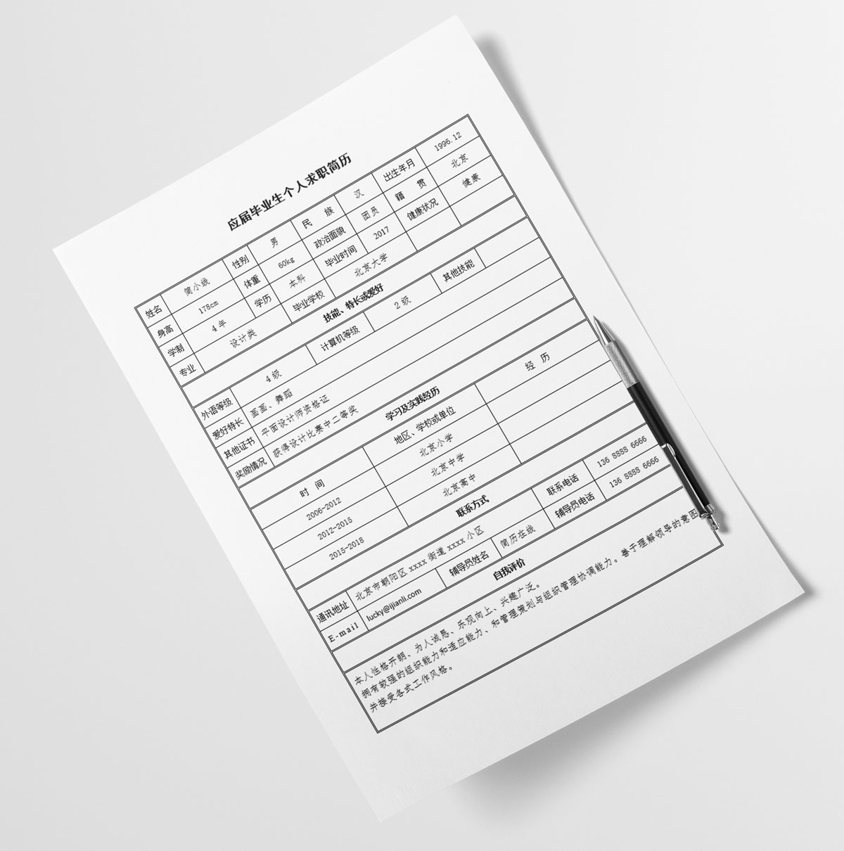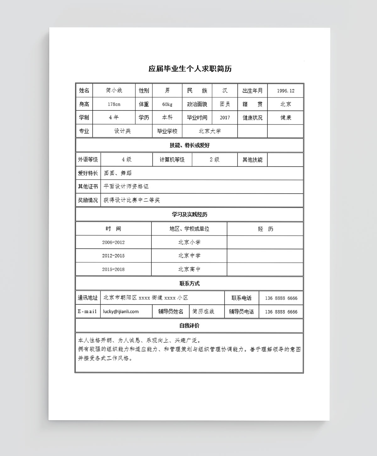简洁明了应届生个人简历表格模板(BG10201)