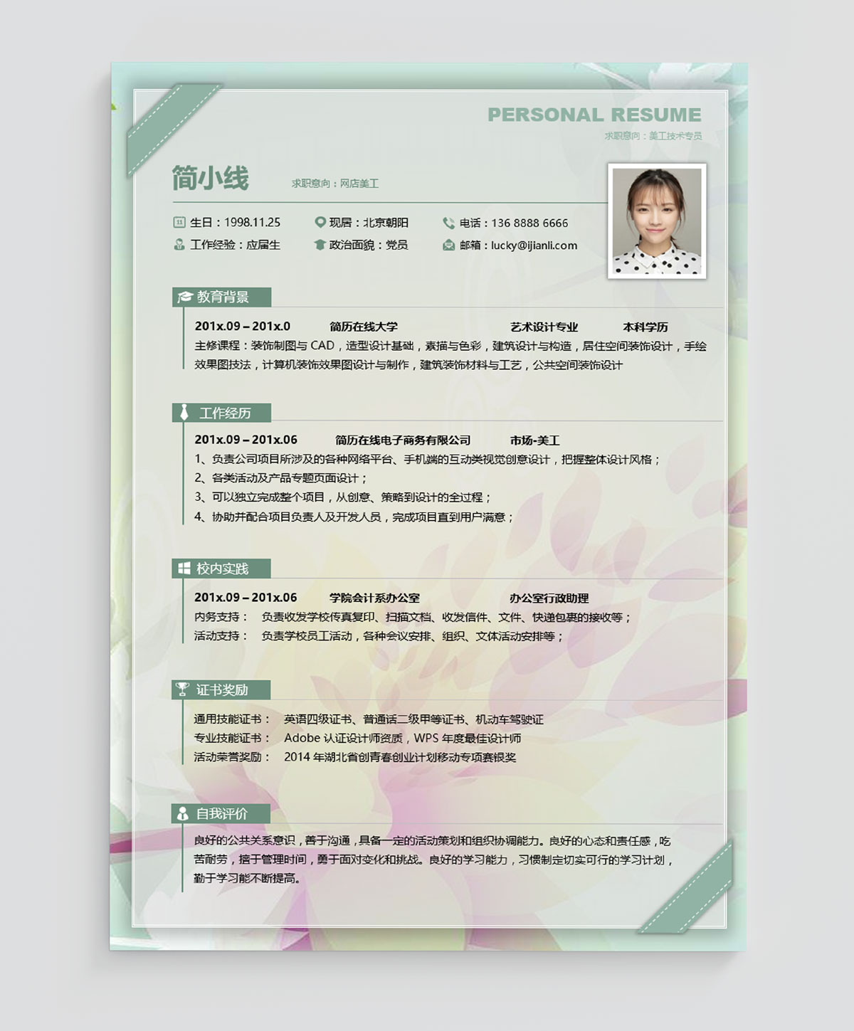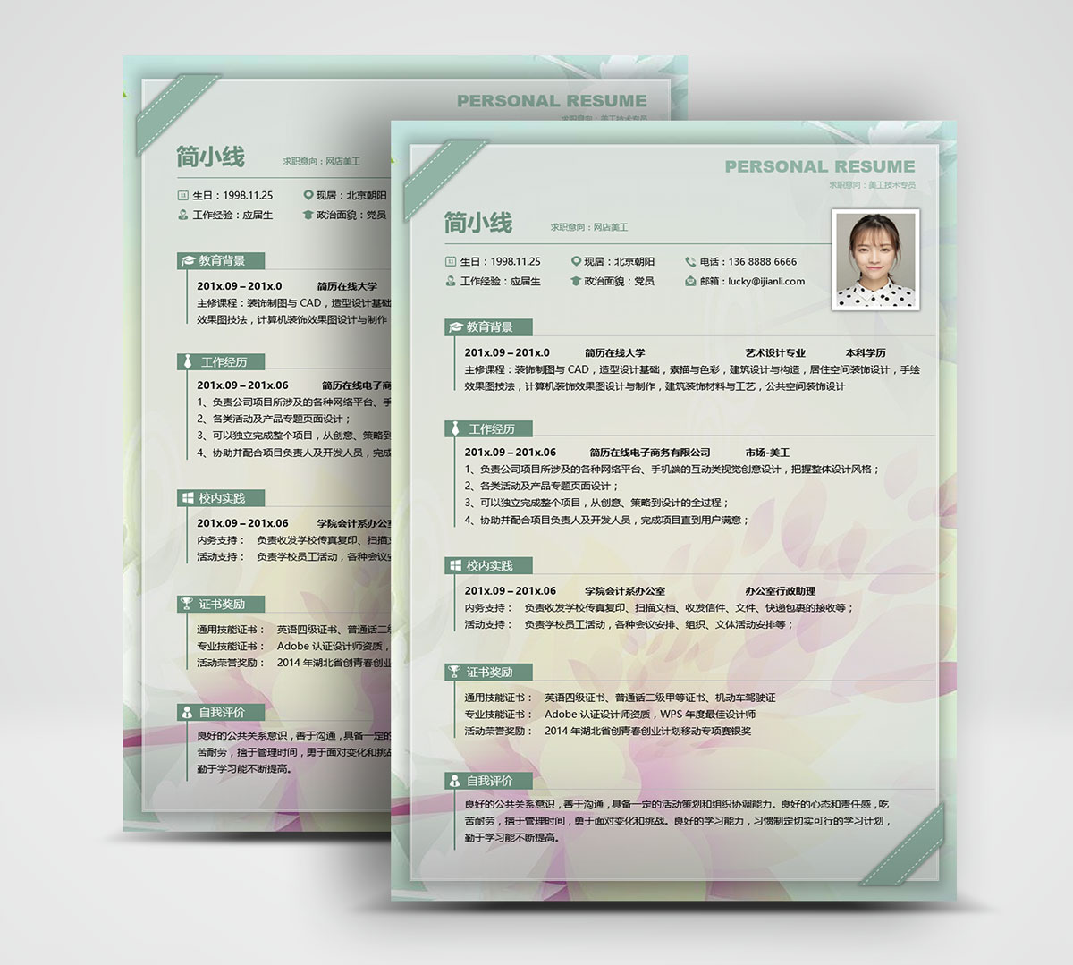 所下载的简历模板均可以全元素修改,编辑。全元素是指模板的所有内容,如文字、标题、图标、背景色、照片等等,这些均可以做添加、删除、复制、修改、替换等动作。