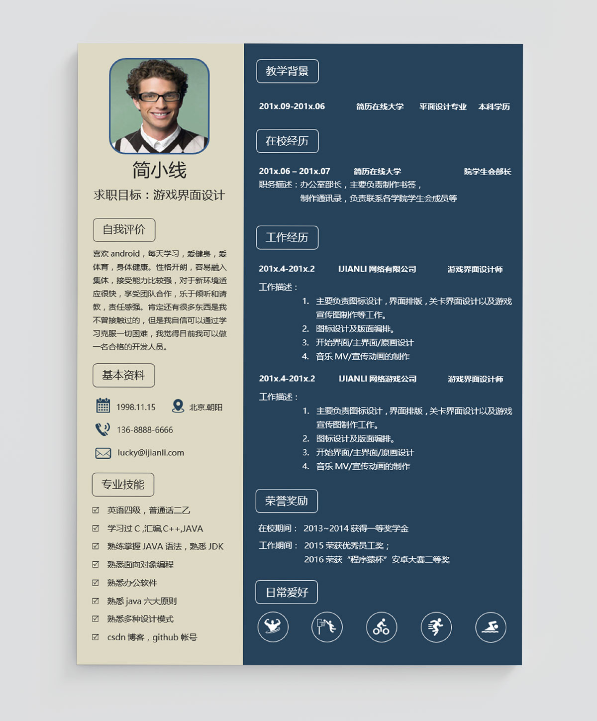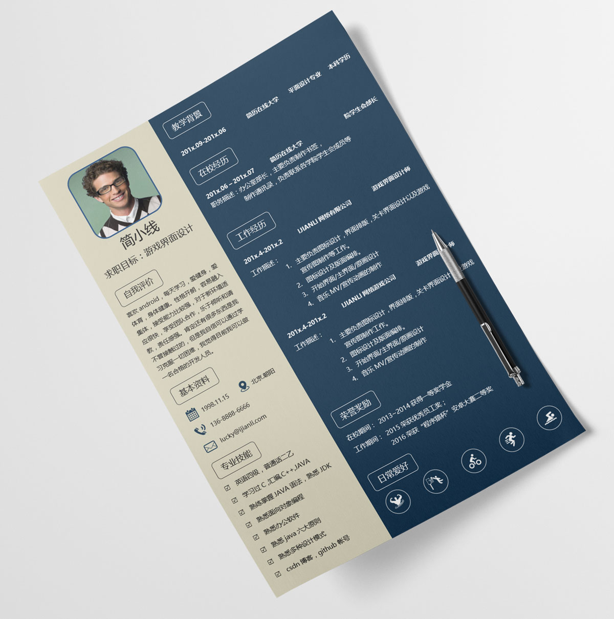 游戏设计师个人简历模板(JD10204)