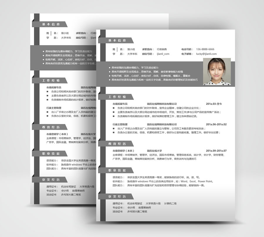 所下载的简历模板均可以全元素修改,编辑。全元素是指模板的所有内容,如文字、标题、图标、背景色、照片等等,这些均可以做添加、删除、复制、修改、替换等动作。