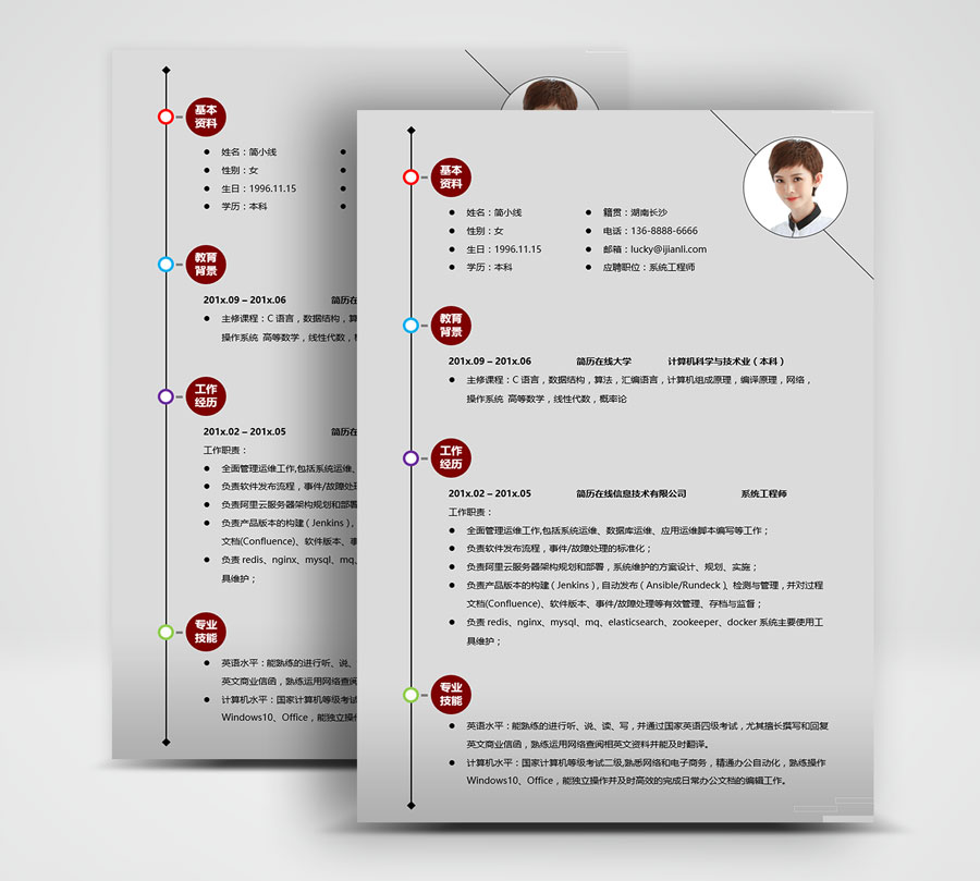 - 所下载的简历模板均可以全元素修改,编辑。全元素是指模板的所有内容,如文字、标题、图标、背景色、照片等等,这些均可以做添加、删除、复制、修改、替换等动作。