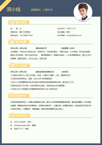 人事专员应届生个人简历模板(JD10267)