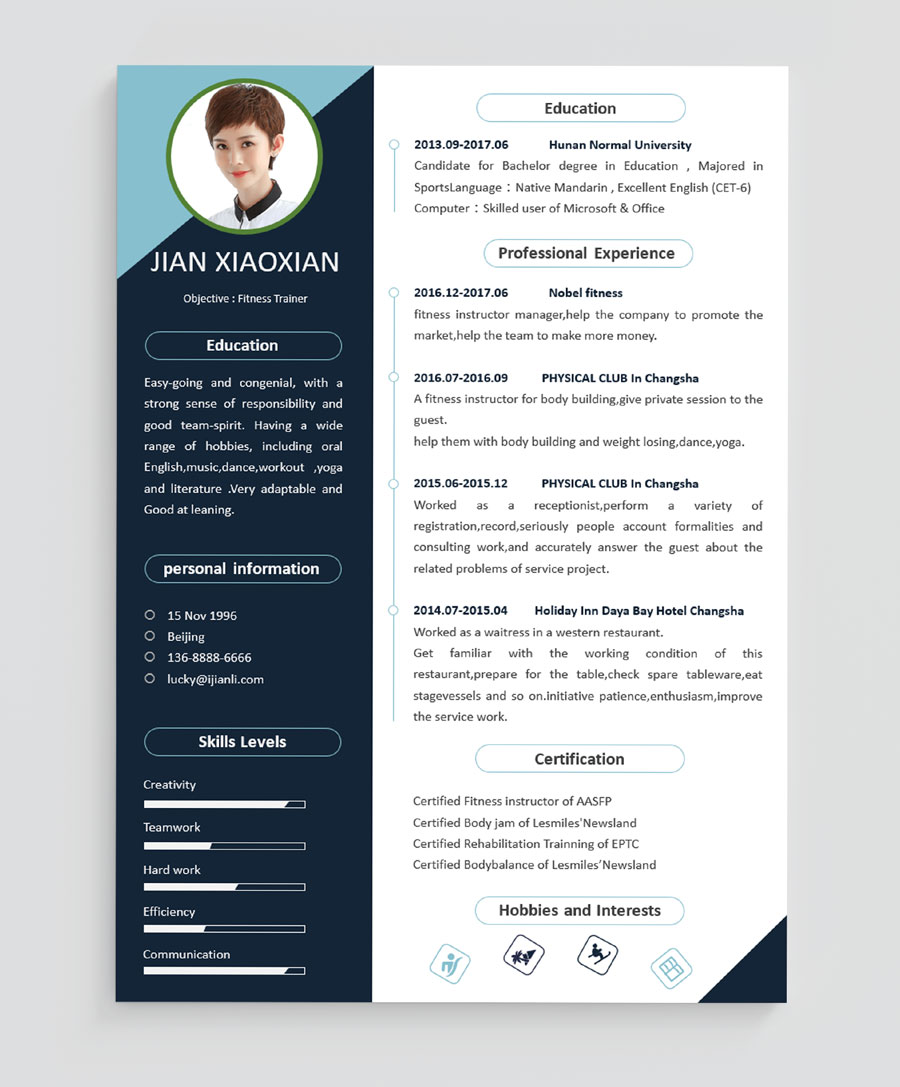 所下载的简历模板均可以全元素修改,编辑。全元素是指模板的所有内容,如文字、标题、图标、背景色、照片等等,这些均可以做添加、删除、复制、修改、替换等动作。