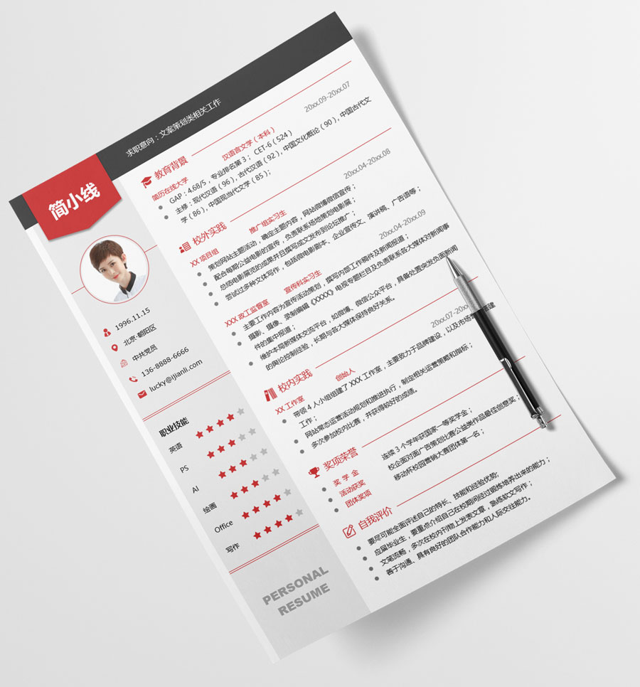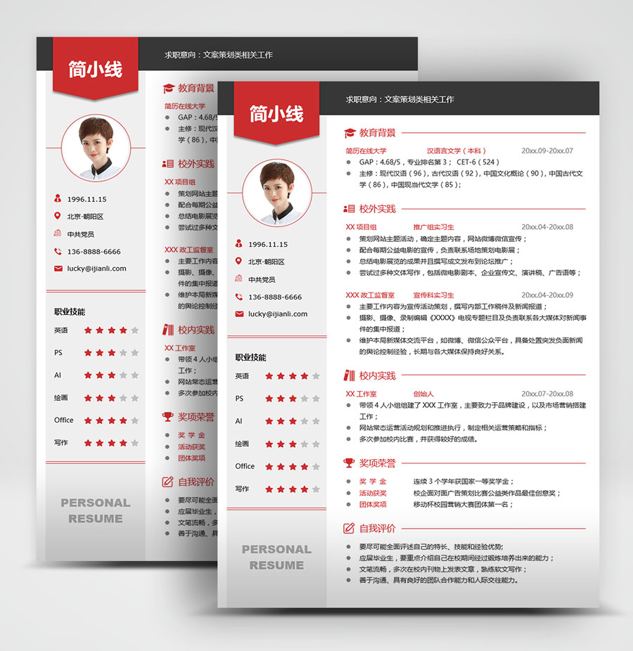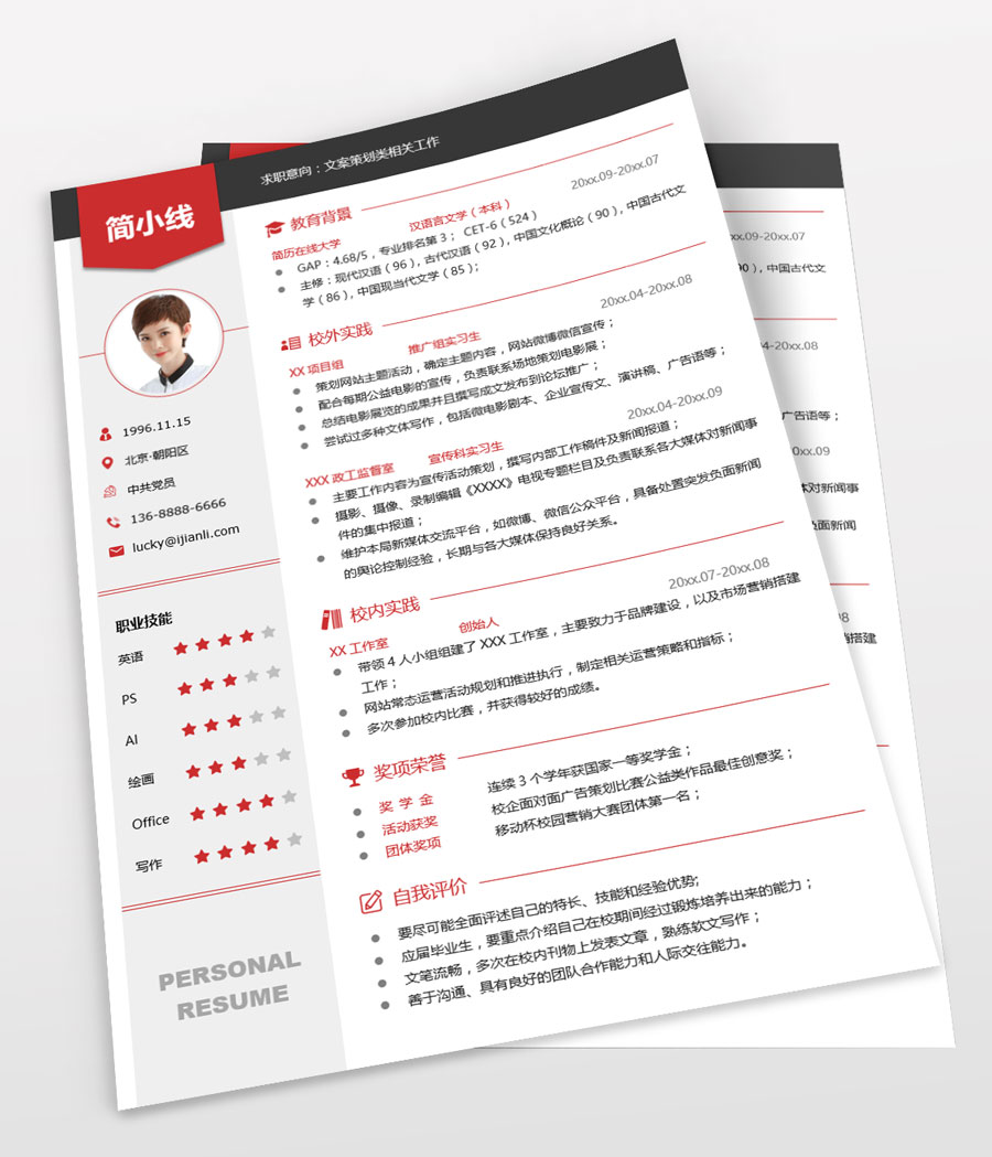 文案策划个人简历模板(JD10318)