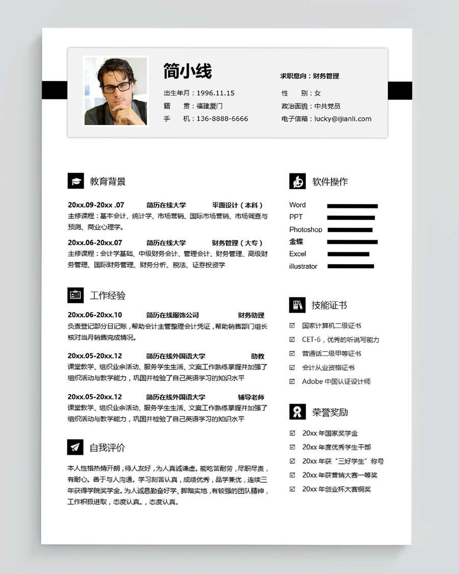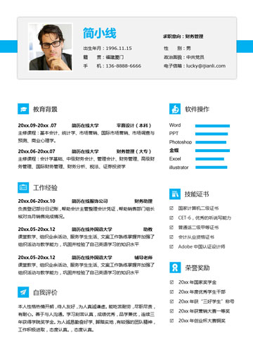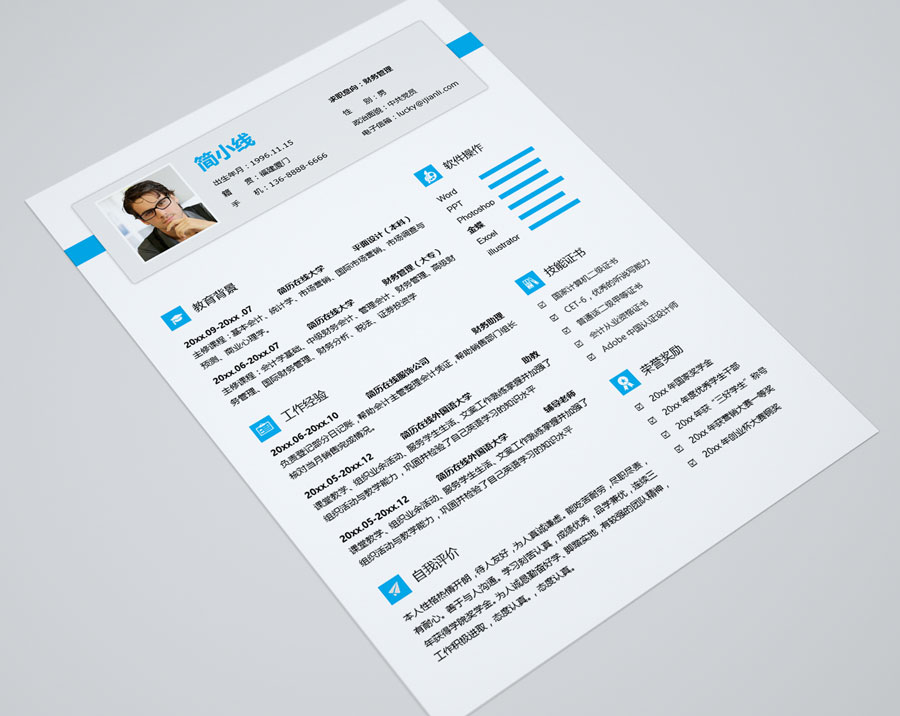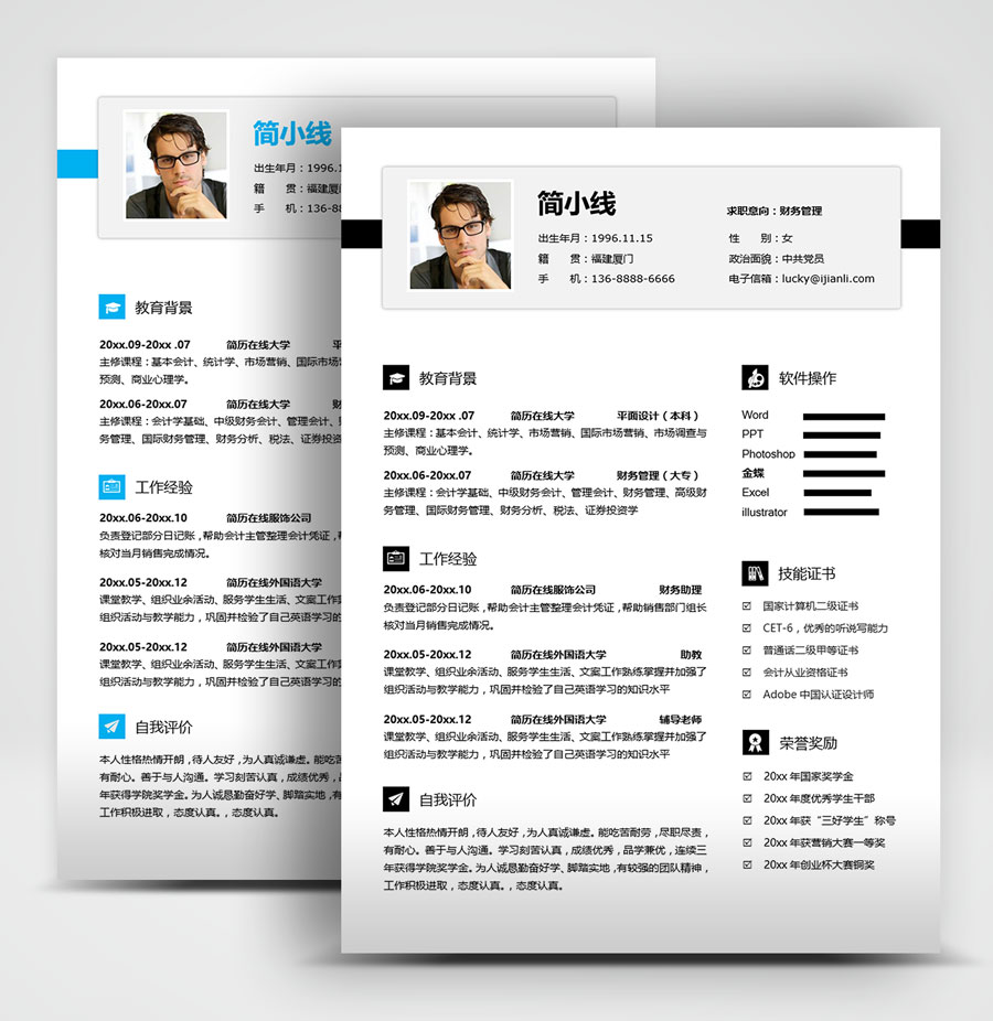 所下载的简历模板均可以全元素修改,编辑。全元素是指模板的所有内容,如文字、标题、图标、背景色、照片等等,这些均可以做添加、删除、复制、修改、替换等动作。
