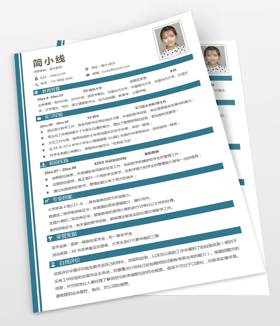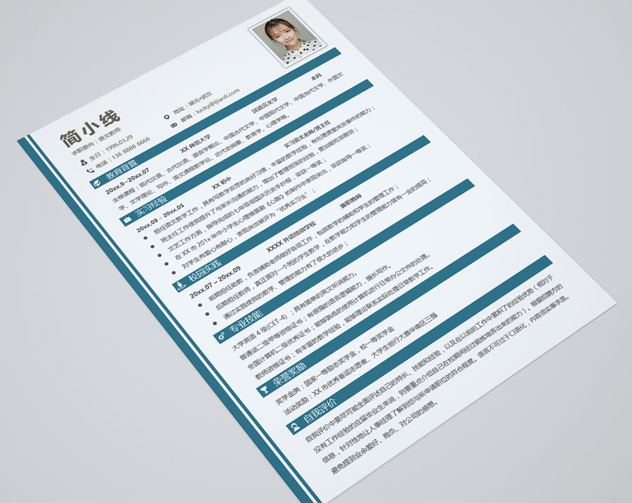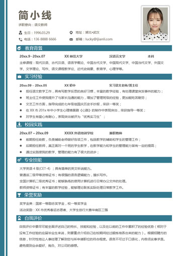 语文教师个人简历模板(JD10337)