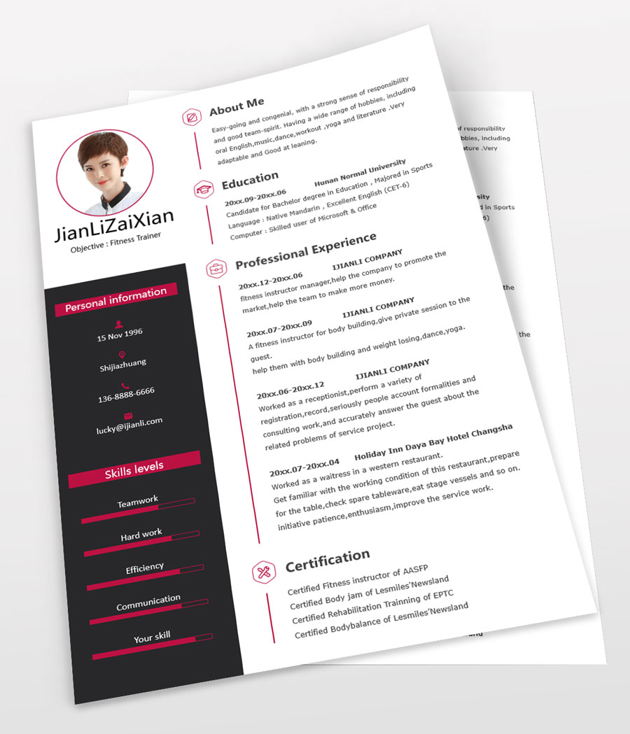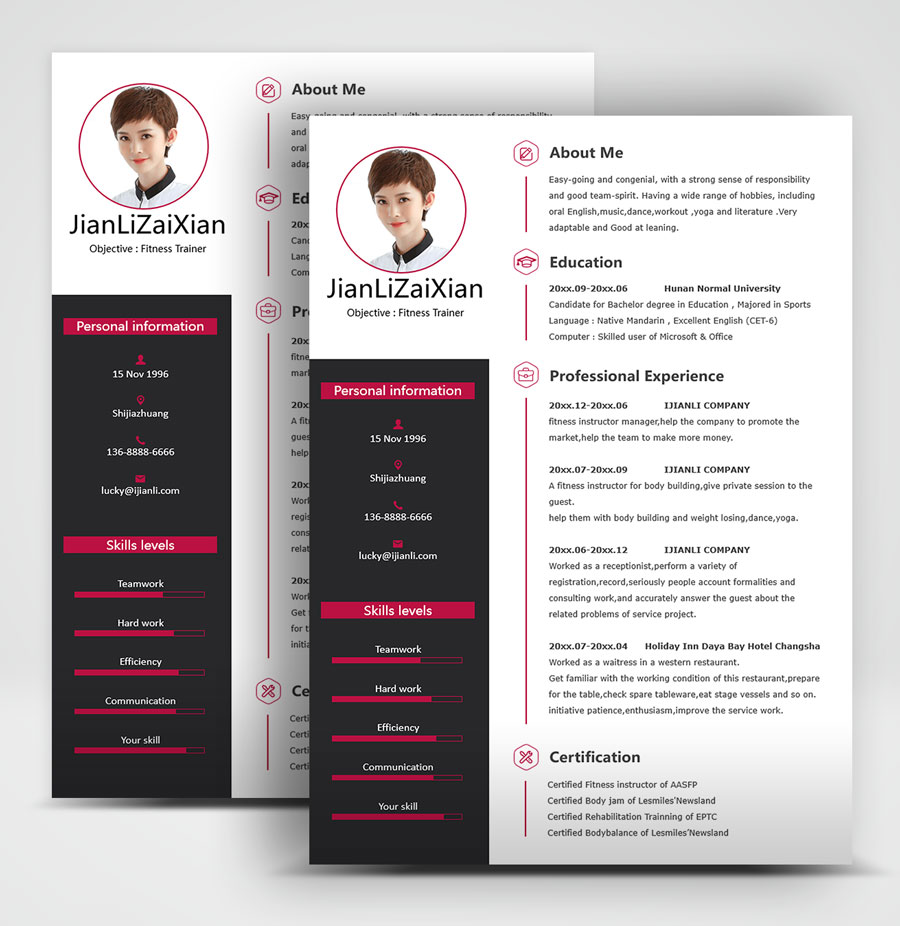 所下载的简历模板均可以全元素修改,编辑。全元素是指模板的所有内容,如文字、标题、图标、背景色、照片等等,这些均可以做添加、删除、复制、修改、替换等动作。