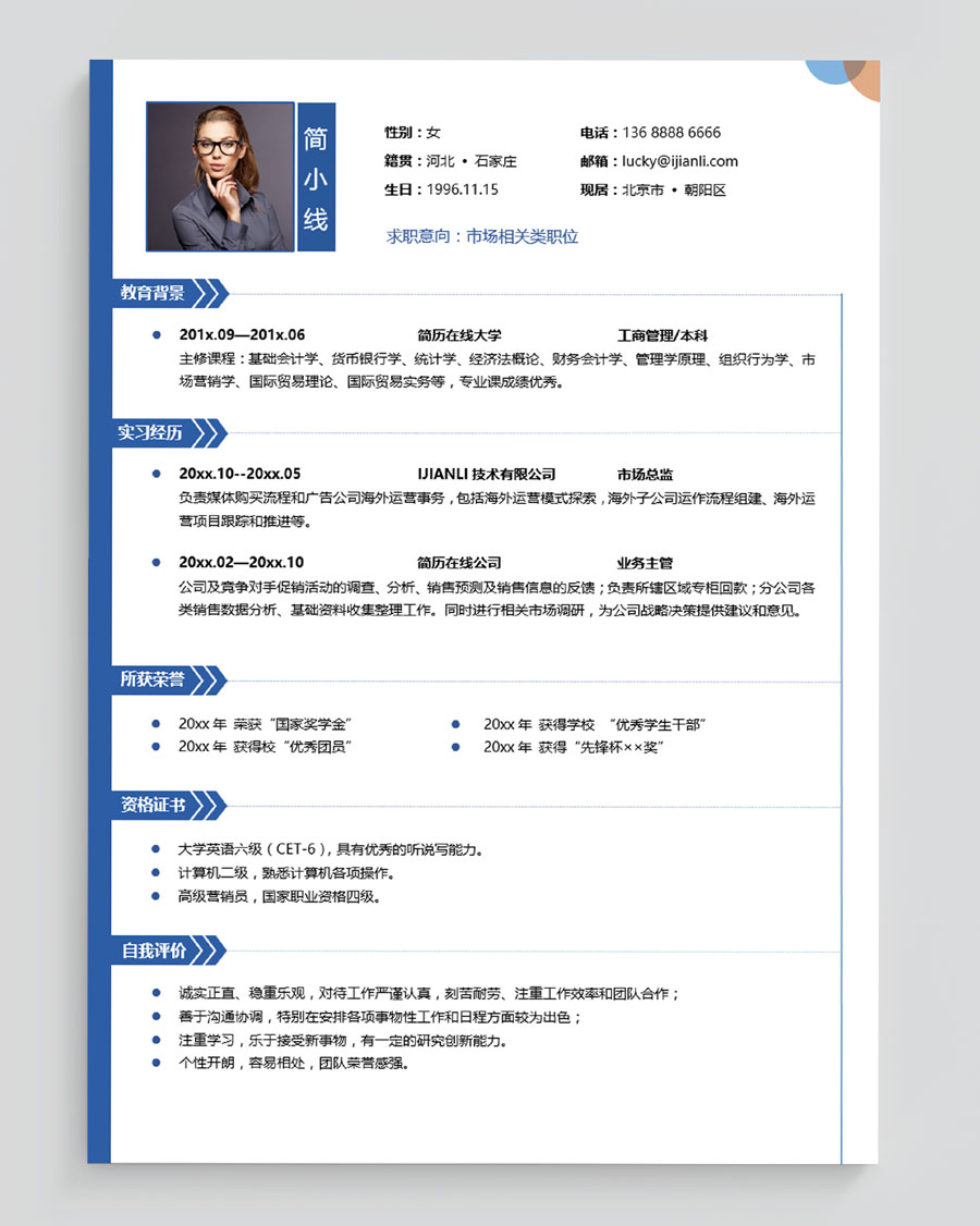 所下载的简历模板均可以全元素修改,编辑。全元素是指模板的所有内容,如文字、标题、图标、背景色、照片等等,这些均可以做添加、删除、复制、修改、替换等动作。