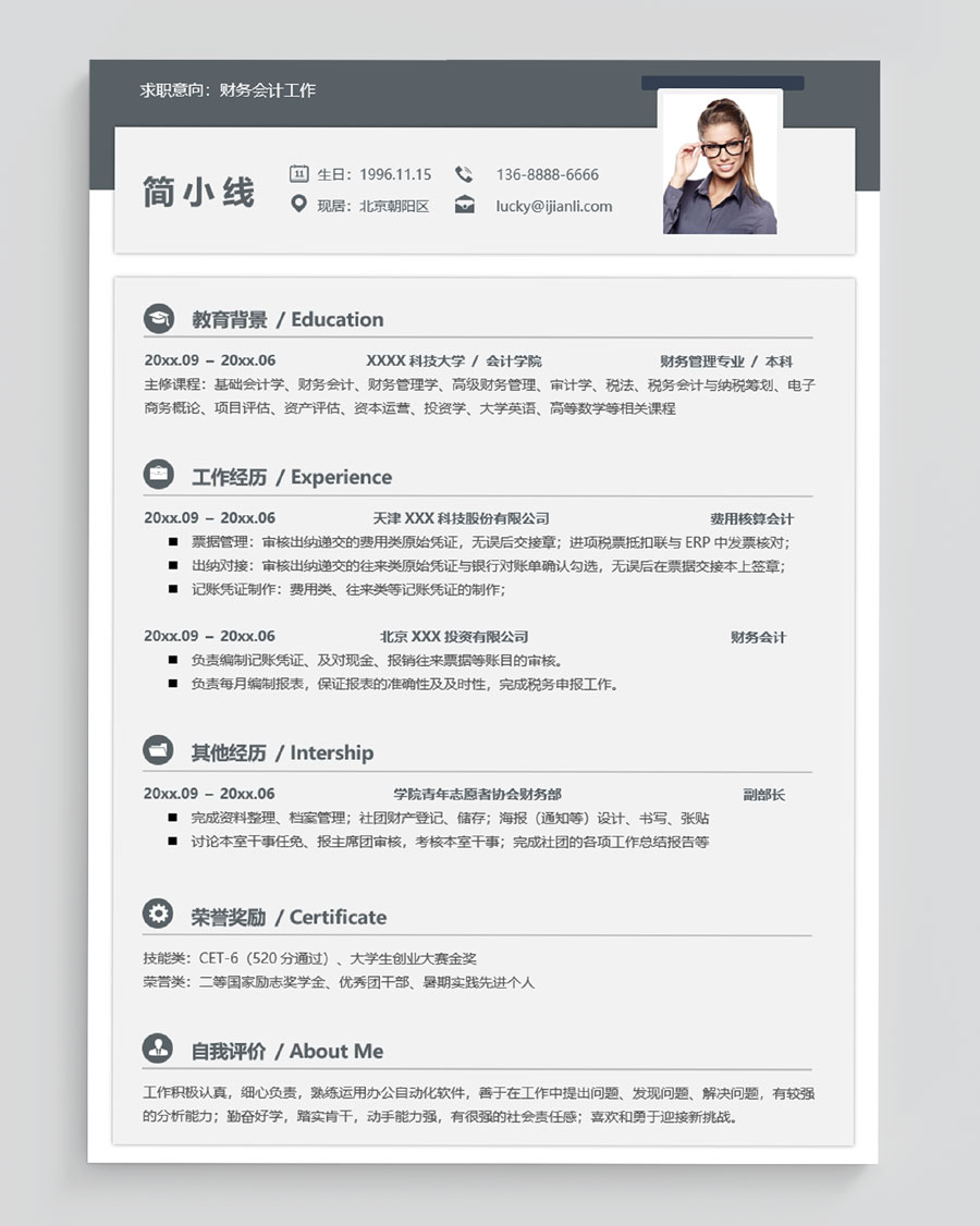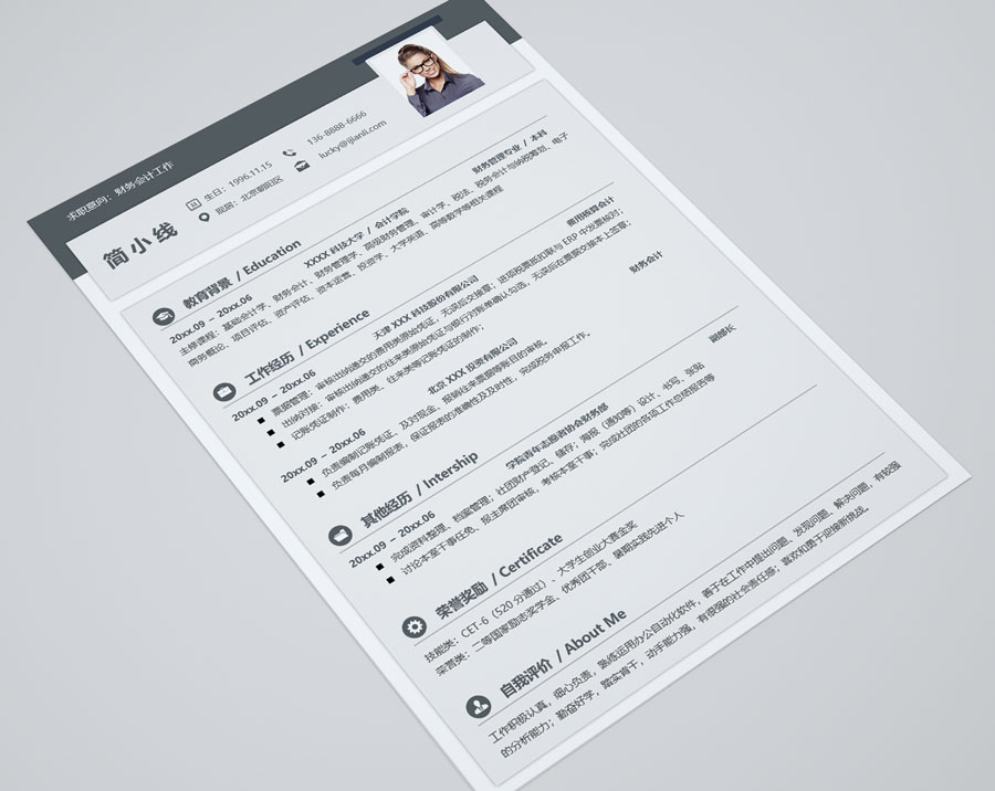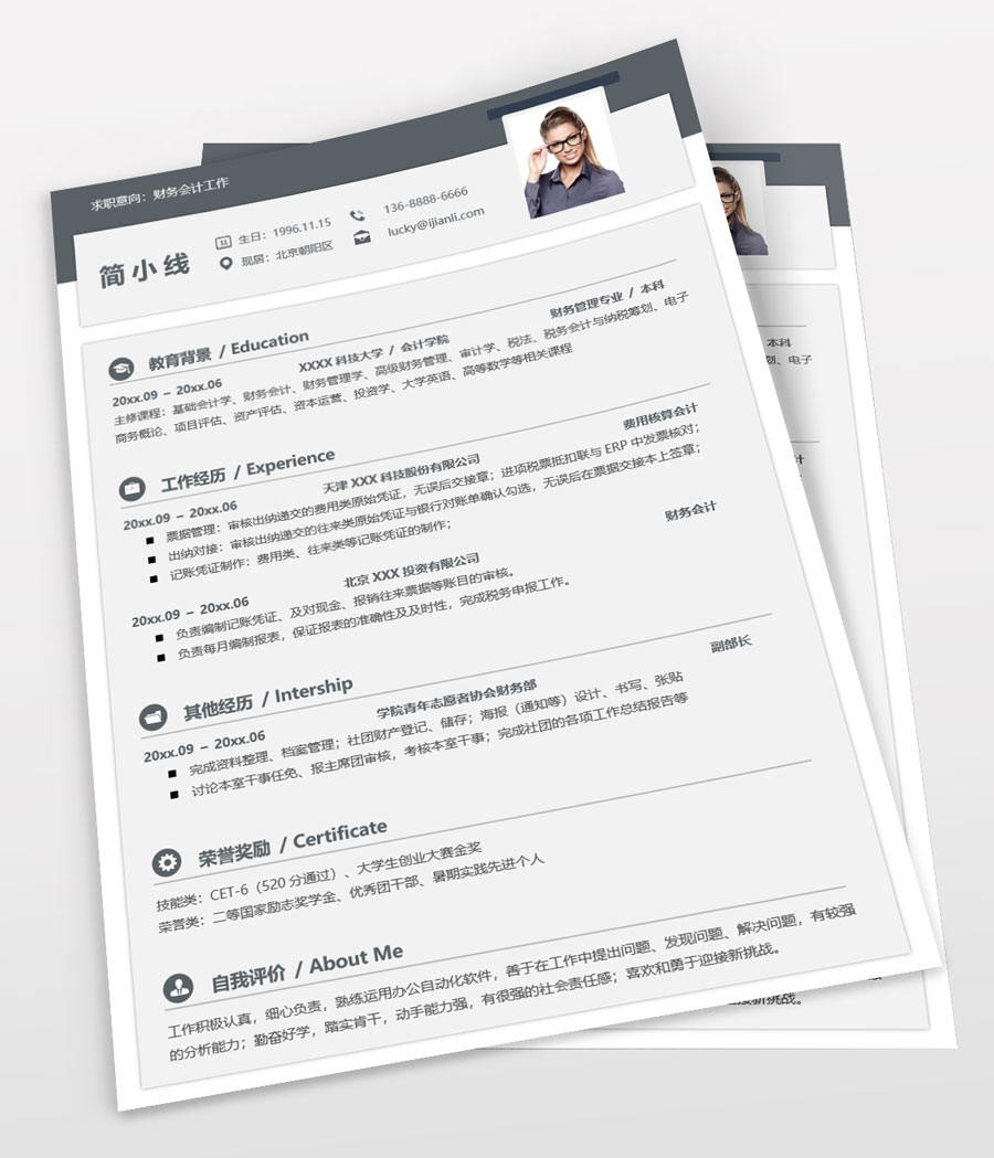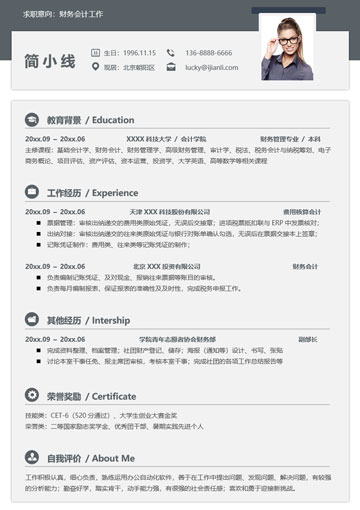 财务相关个人简历模板(JD10362)