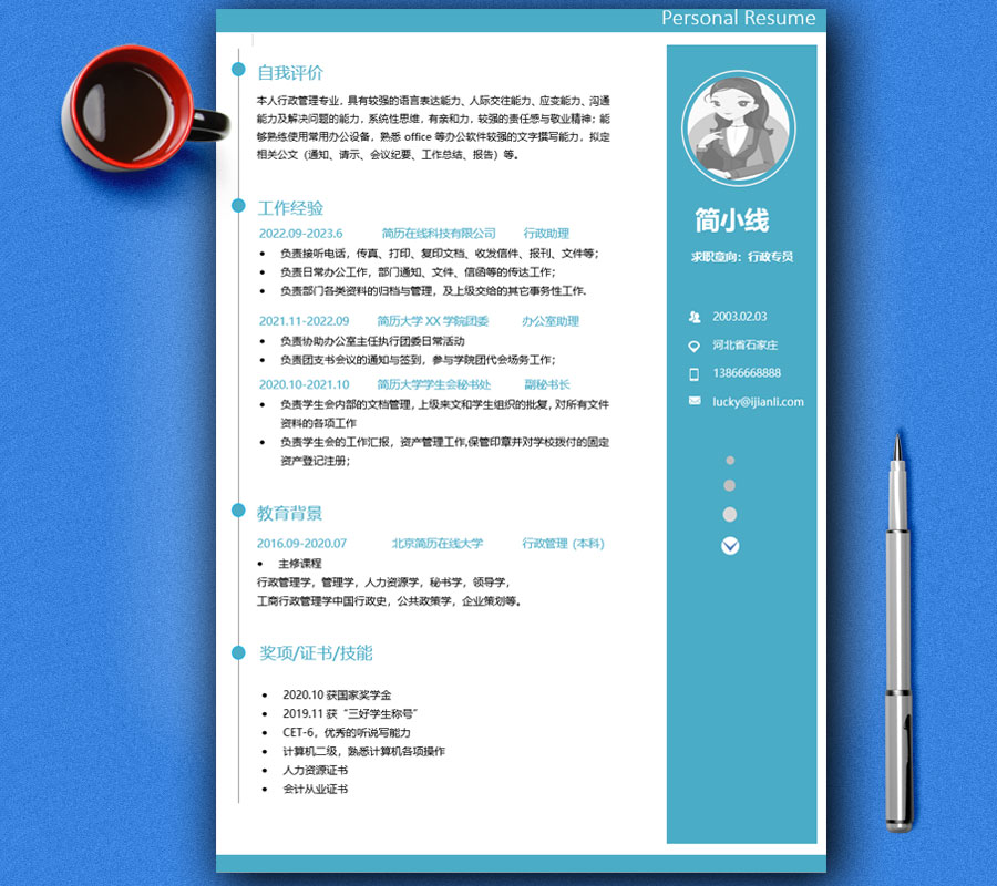 所下载的简历模板均可以全元素修改,编辑。全元素是指模板的所有内容,如文字、标题、图标、背景色、照片等等,这些均可以做添加、删除、复制、修改、替换等动作。