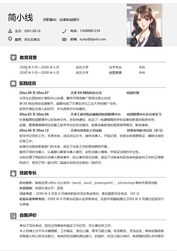 实习生个人求职简历模板(JD10389)